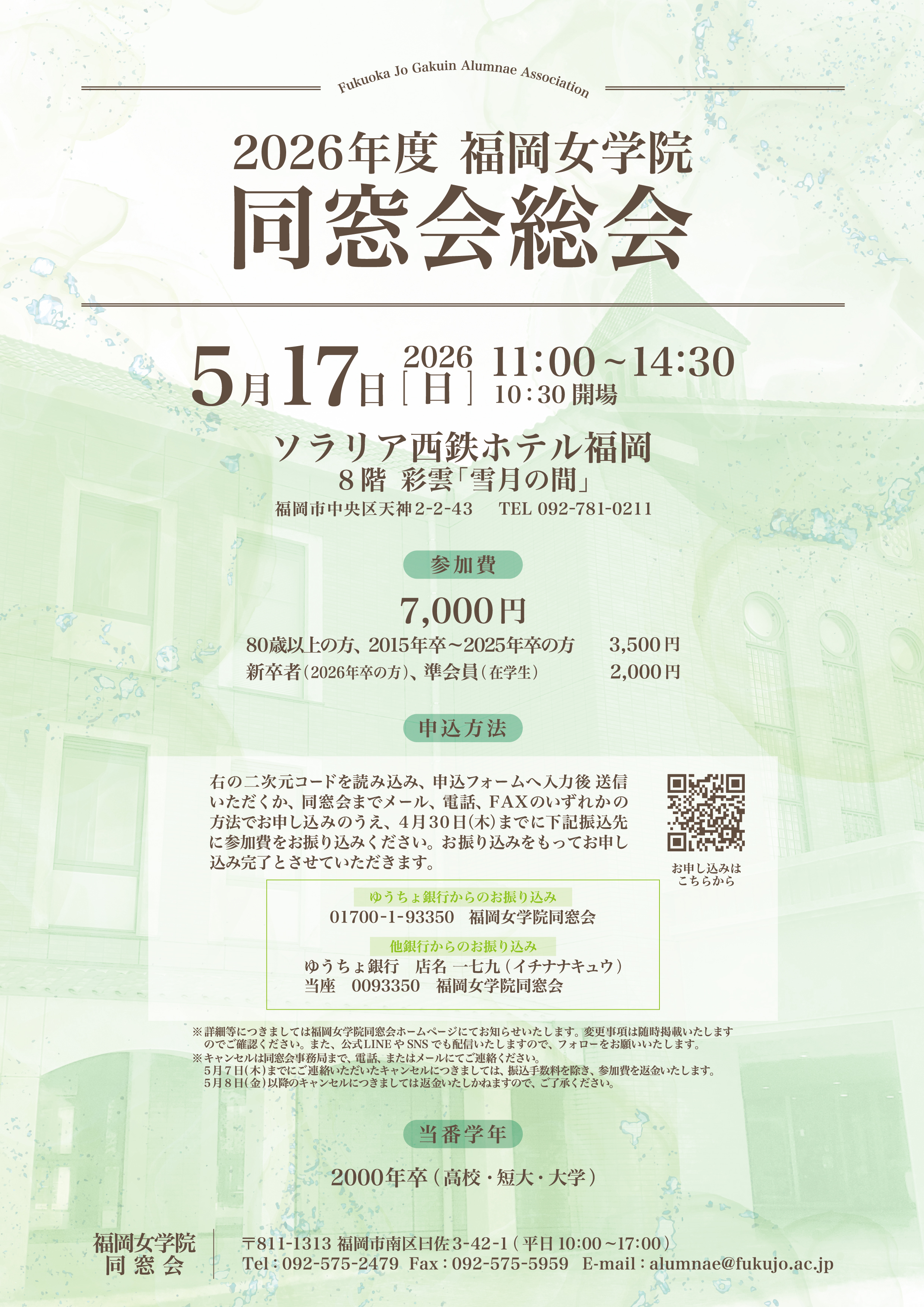 2026年度 同窓会総会・懇親会のお知らせ