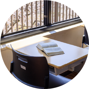 図書館蔵書は全7万冊、英語書籍だけでも1万7千冊。併設の大学図書館なども利用可能。様々な知とつながる扉が開かれます。