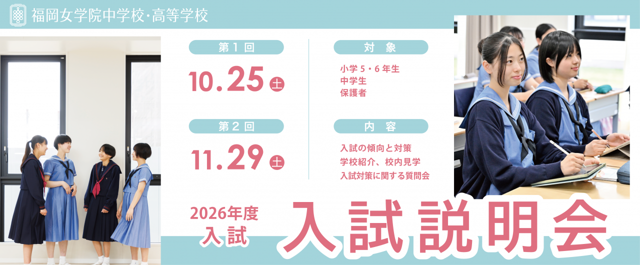 - 2025/09/24小学5・6年生と中学生対象:入試説明会【10/25・11/29】