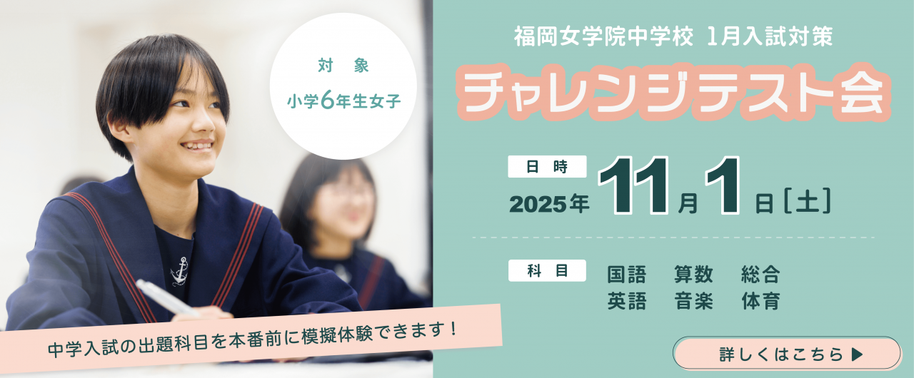 - 2025/08/27小学6年生対象:チャレンジテスト会【11/1(土)】