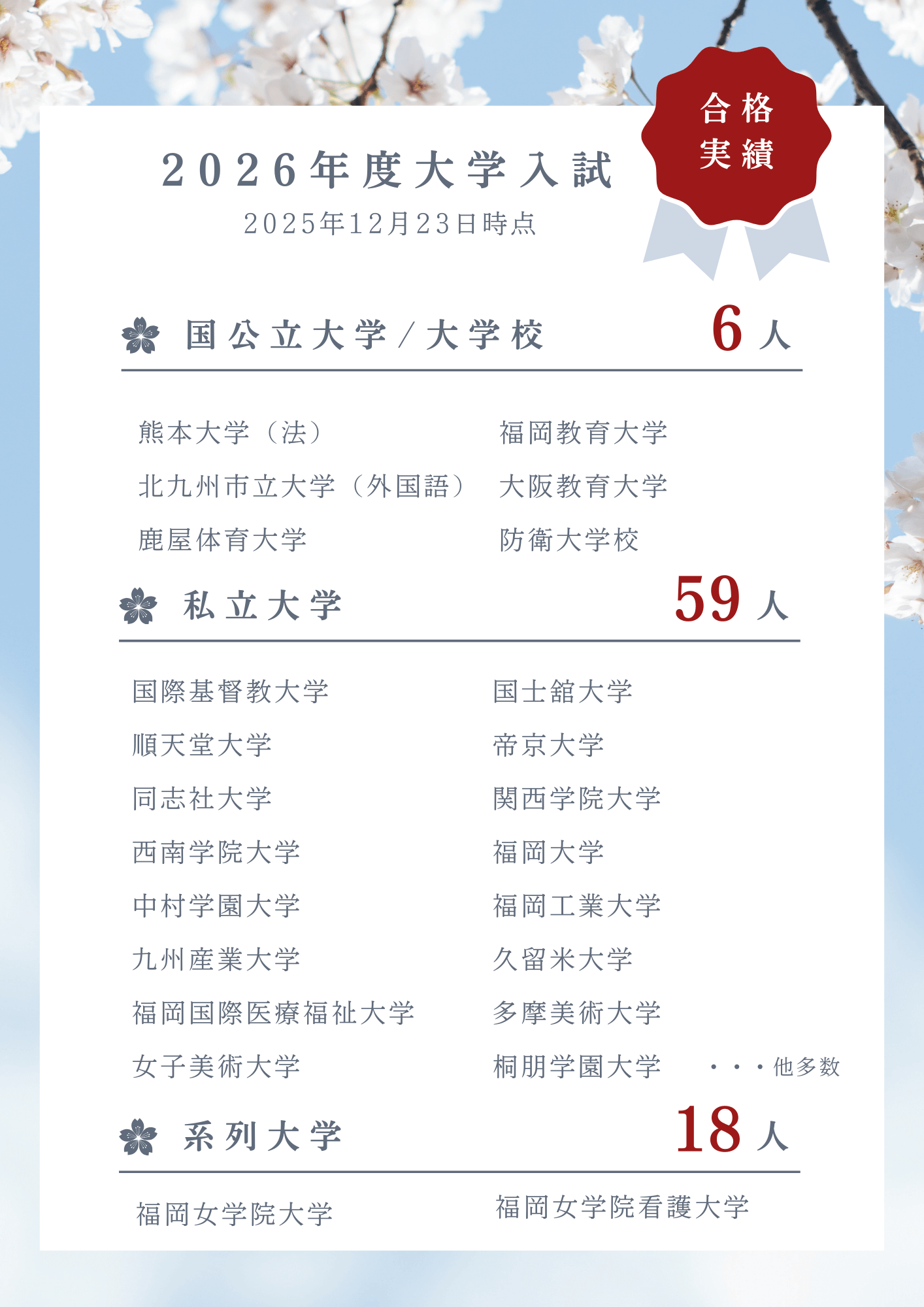 - 2026/01/092026年度中学1月入試 合格発表について