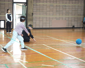 「ゴールボール」とは、目隠しをして鈴の入ったボールを転がし、ゴールに入れて得点を競うパラリンピック特有の競技です!