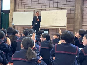新入生である中学1年生に向けて、重枝校長先生によるアサーショントレーニングが実施されました。