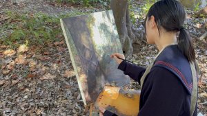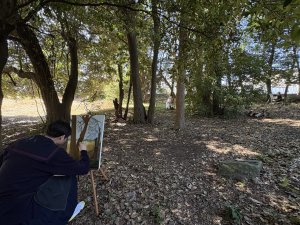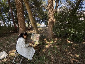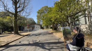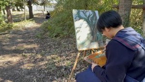2026.02.17 新着情報, 未分類 【高校1年生】油絵制作を行いました 2026年2月17日(火)、芸術の授業(油絵選択者)で高校1年生が学院内で油絵制作に取り組みました。 それぞれが選んだ場所に分かれ、思い思いの風景をキャンバスに描きました。澄み渡る空の青さ、木々の豊かな陰影、やわらかく差し込む木漏れ日など、身近な景色を丁寧に見つめながら、色彩豊かに表現していました。 生徒たちは自然の光や空気感を感じ取りながら、集中して制作に取り組んでおり、校内の風景の新たな魅力を発見する時間となりました。 完成した作品がどのように仕上がるのか、今から楽しみです。