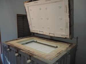 新美術工芸館内に設置されている電気窯を使用し、約1250度の高温で素焼き・本焼きの2回焼いて、作品が完成しました。