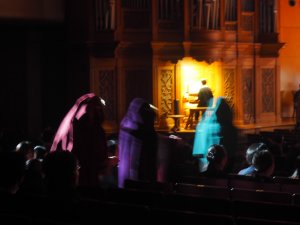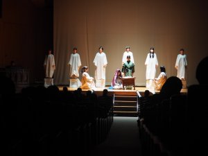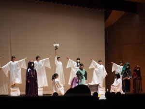 礼拝では、宗教委員・放送研究部・Missionクワイア・ハンドベルクワイア・音楽部(ミュージカル)・音楽科など、多くの生徒によってページェント(キリスト降誕劇)が行われました。