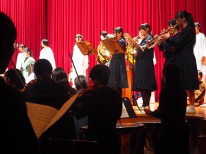 また、最後には、ハレルヤオーケストラと全校生徒によるハレルヤコーラスが行われ、来賓・保護者の皆様とともにクリスマスをお祝いました。