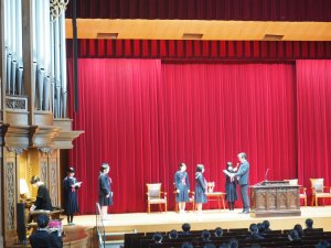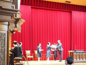また、この日は先日行われた英語暗唱大会の表彰と、教会出席の表彰式も行われました。受賞した皆さん、おめでとうございます。日頃の努力の積み重ねが実を結んだことを嬉しく思います。これからも、それぞれの歩みの中で力を発揮していってくれることを願っています。