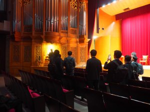 校長先生が関西経団連の次世代リーダー研修を行った際、本校の雰囲気を少しでも味わっていただきたく、講堂でパイプオルガンを聴いていただきました。