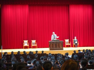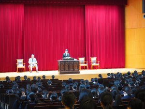 校長講話では、「重枝人生道場」をテーマに、新しい学年へ進む生徒たちに向けたお話がありました。