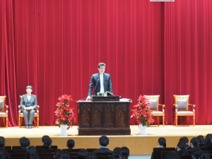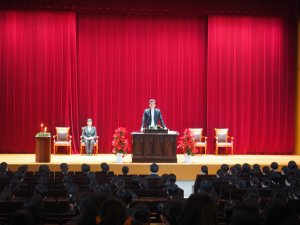 キリスト教の教父アウグスティヌスの定義をもとに、讃美歌の意味をわかりやすく紹介してくださり、神に向かって歌うこと、想いを込めて歌うこと、そして声に出して歌うことの大切さを、生徒たちに改めて伝えてくださいました。