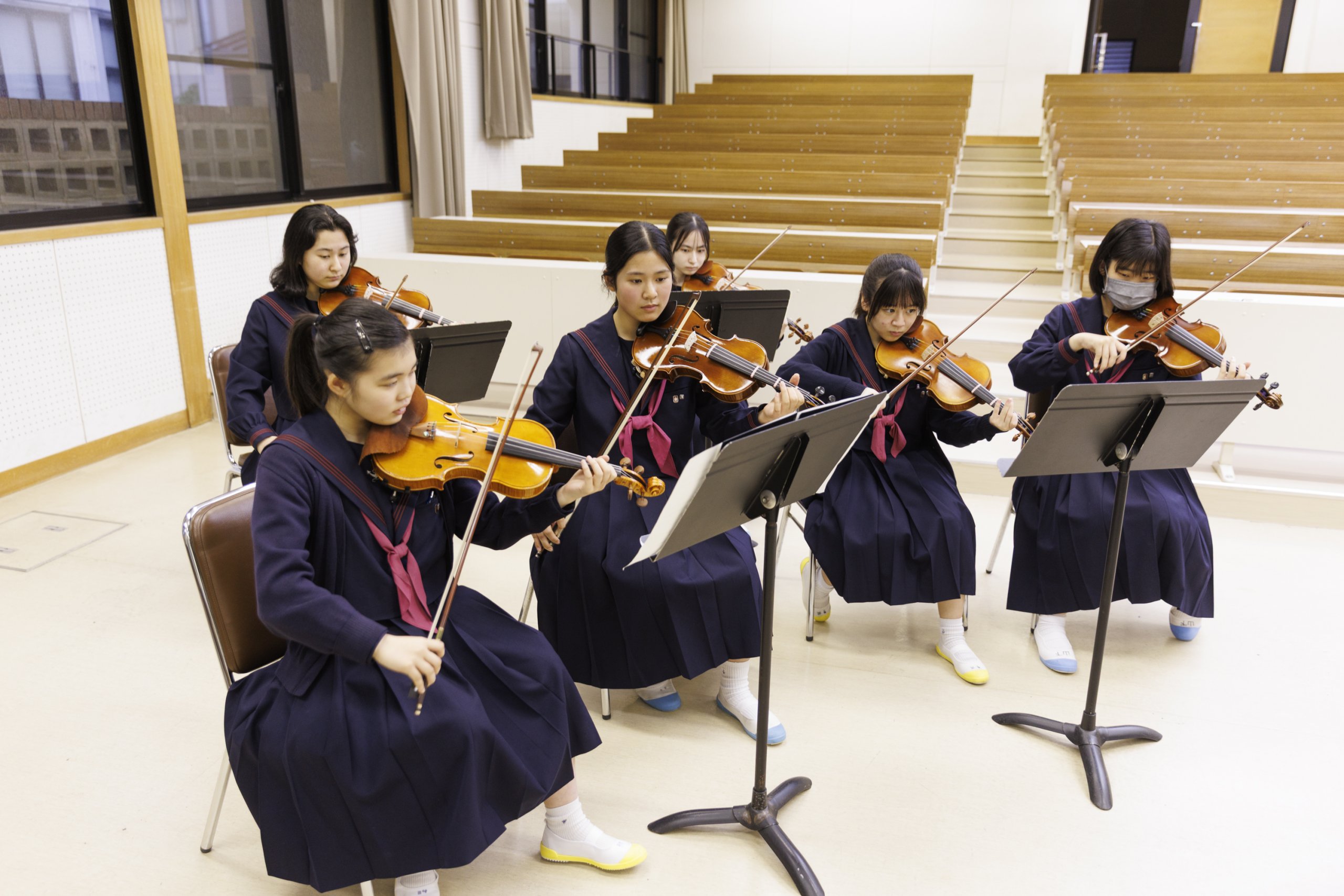 中学生16名、高校生15名で活動を行っています。中学生のほとんどは入部してから楽器を始めていますが、日々の練習でめきめきと力を付けて上手になっています。高校生は吹奏楽部出身の生徒や音楽科の生徒も多く在籍し、リーダーシップをとって練習を進めています。部員同士とても仲が良く、音楽を通して絆が深まっています。「お客様に楽しんでいただける演奏を!」をモットーに、選曲や演出にもこだわりながら、日々練習に励んでいます。