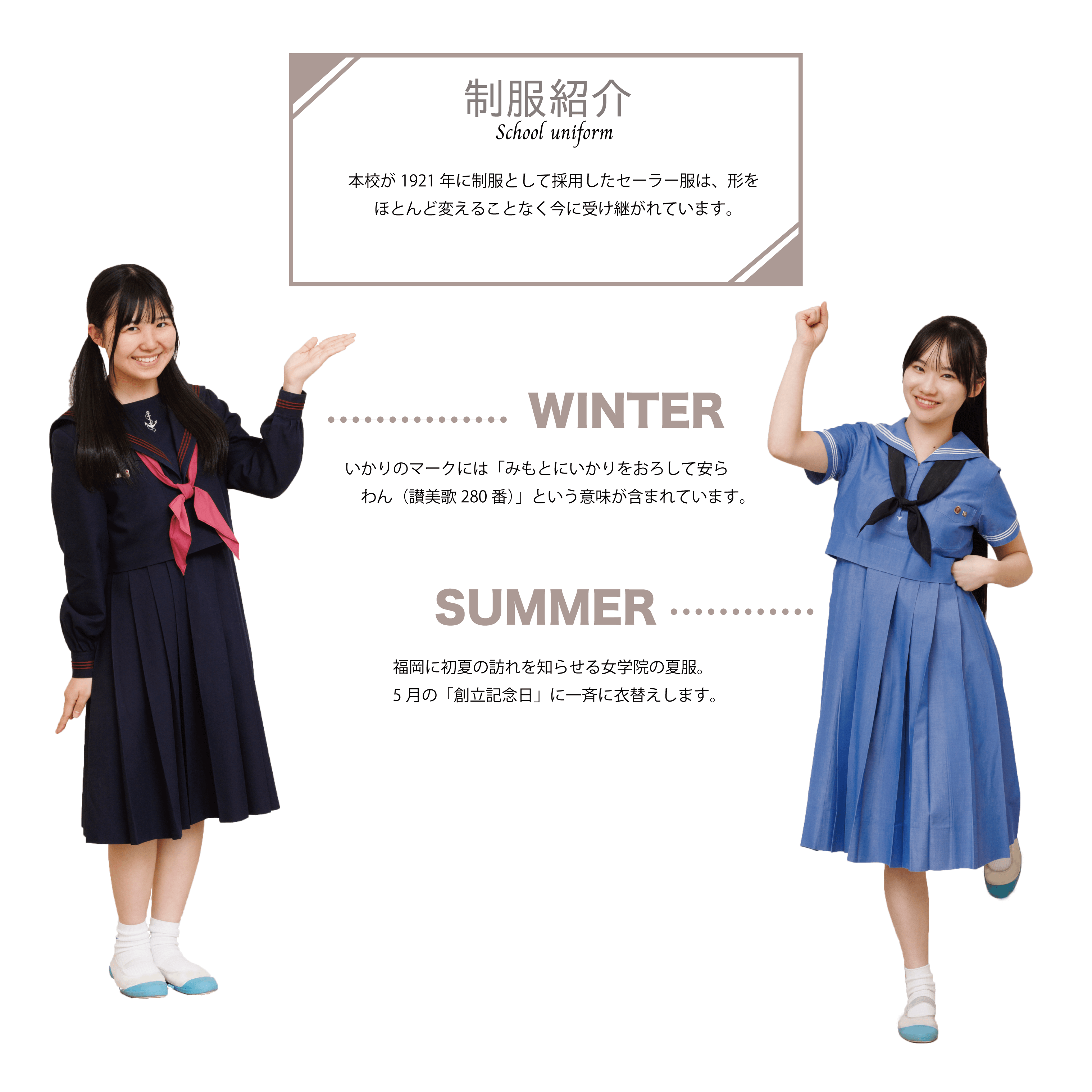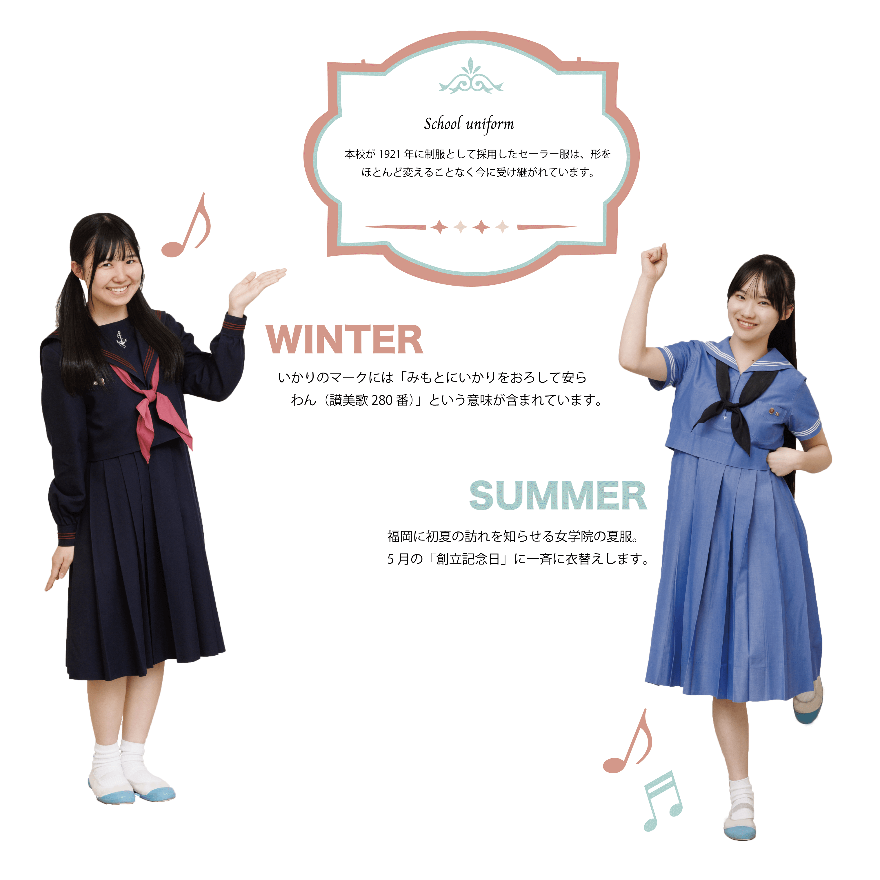 - 女学院では、毎朝讃美歌を歌い、聖書の言葉を聞きます。月曜〜水曜日には高校生、木曜〜金曜日には中学生が講堂で礼拝を守っています。